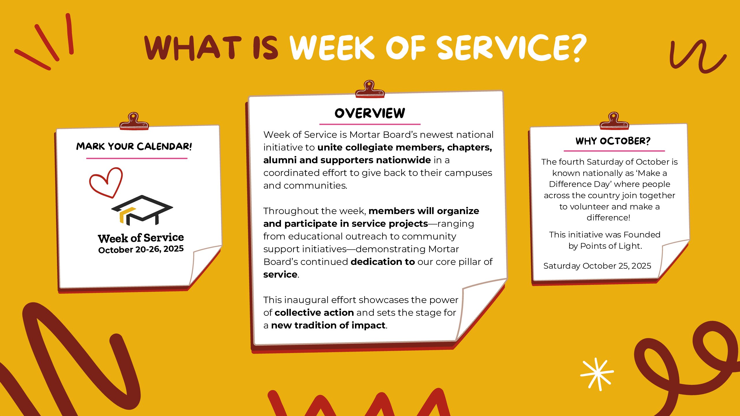 We are excited to launch the first annual, Mortar Board Week of Service!